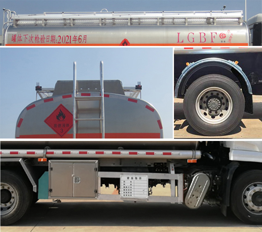 | 配置 | 1、該車適用于危險品運(yùn)輸,運(yùn)送危險貨物車輛類型為:FL型,類項號:3。罐體有效容積:16.6立方米,運(yùn)輸介質(zhì):汽油,密度:700千克/立方米,罐體外形尺寸(長×寬×高)(mm):5700×2300×1600。2、側(cè)/后防護(hù)材料為鋁合金,螺栓連接。后防護(hù)截面尺寸120×60mm,下邊緣離地高500mm。罐體上部選裝上走道,選裝弧形擋泥板,選裝右側(cè)防護(hù)樣式。3、僅采用軸距(mm):4700。后軸采用空氣懸架。隨底盤選裝駕駛室前面罩,選裝側(cè)窗玻璃;駕駛室頂部中間三個裝飾燈為選裝件;前霧燈為選裝件;駕駛室前臉擾流罩為選裝件。僅選用排氣管前置、限速裝置(限速80km/h)、前輪盤式制動及子午線輪胎的底盤;安裝帶有衛(wèi)星定位功能的行駛記錄儀;ABS型號/生產(chǎn)廠家:3631010-C2000/東科克諾爾商用車制動系統(tǒng)(十堰)有限公司。采用的發(fā)動機(jī)與油耗值(L/100Km)對應(yīng)關(guān)系為: B6.2NS6B210/26.5,DDi50E190-60/23.9。 該車后軸為采用空氣懸架.轉(zhuǎn)向輪安裝輪胎爆胎應(yīng)急防護(hù)裝置。該車型可選裝ETC車載裝置. | ||