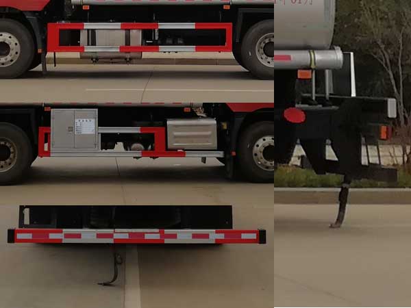 | 配置 | 1、該車適用于危險品運輸,運送危險貨物車輛類型為:FL型,類項號:3。運輸介質(zhì):汽油,密度:700千克/立方米。罐體有效容積21.4立方米,罐體外形尺寸(長×寬×高)(mm):7000×2350×1580。2、側(cè)、后防護(hù)材料均為Q235,螺栓連接;后防護(hù)截面尺寸(寬×高)(mm)60×120,下邊緣離地高500mm。3、EBS系統(tǒng)生產(chǎn)廠家及型號分別為:威伯科汽車**系統(tǒng)(**)有限公司(EBS3)。僅選用排氣管前置、限速裝置(限速79km/h)、前輪盤式制動及子午線輪胎的底盤;安裝帶有衛(wèi)星定位功能的行駛記錄儀;發(fā)動機型號及油耗值(L/100km)為:WP7.270E61/36.79,WP7.300E61/36.79。后軸采用空氣懸架。轉(zhuǎn)向輪安裝輪胎爆胎應(yīng)急防護(hù)裝置。 | ||