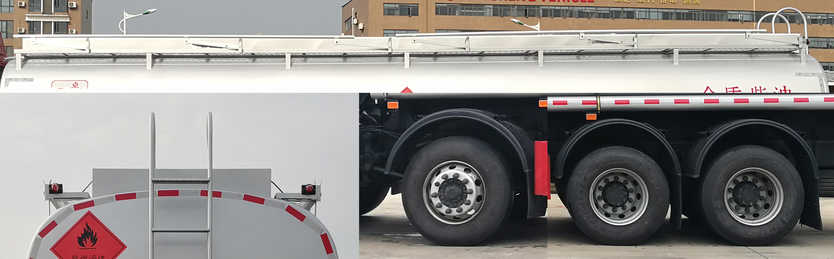 | 配置 | 該車為危險貨物運(yùn)輸車,運(yùn)送危險貨物車輛類型為:FL型,類項(xiàng)號:3。運(yùn)輸介質(zhì):汽油,罐體有效容積27.5立方米,罐體外形尺寸(長×寬×高)(mm):8900×2300×1660。僅選用軸距(mm):1800+4575+1400。側(cè)、后防護(hù)材料均為Q235,螺栓連接,后防護(hù)截面尺寸(mm)80×140,下邊緣離地高460mm。隨底盤選裝駕駛室。僅選用排氣管前置、限速裝置(限速80km/h)、前輪盤式制動及子午線輪胎的底盤。轉(zhuǎn)向輪安裝輪胎爆胎應(yīng)急防護(hù)裝置。后軸采用空氣懸架。安裝帶有衛(wèi)星定位功能的行駛記錄儀。EBS**系統(tǒng)型號/生產(chǎn)廠家:EBS3/威伯科(上海)管理有限公司。發(fā)動機(jī)/油耗值(L/100km)對應(yīng)關(guān)系為:MC07.31-60/38.0,MC07.34-60/38.0,MC09.35-60/38.2,MC09.38-60/38.2,MC09.35B-60/38.2,MC07.33-60/38.0,MC07H.33-60/37.44,MC07H.35-60/37.44,MC11.40-60/37.3,MC11.44-60/37.3,MC11.40-61/37.3,MC11.43-61/37.3,WP8.350E61/38.04。選裝ETC。罐體上部選裝上走道,**軸及驅(qū)動軸選裝弧形擋泥板。 | ||