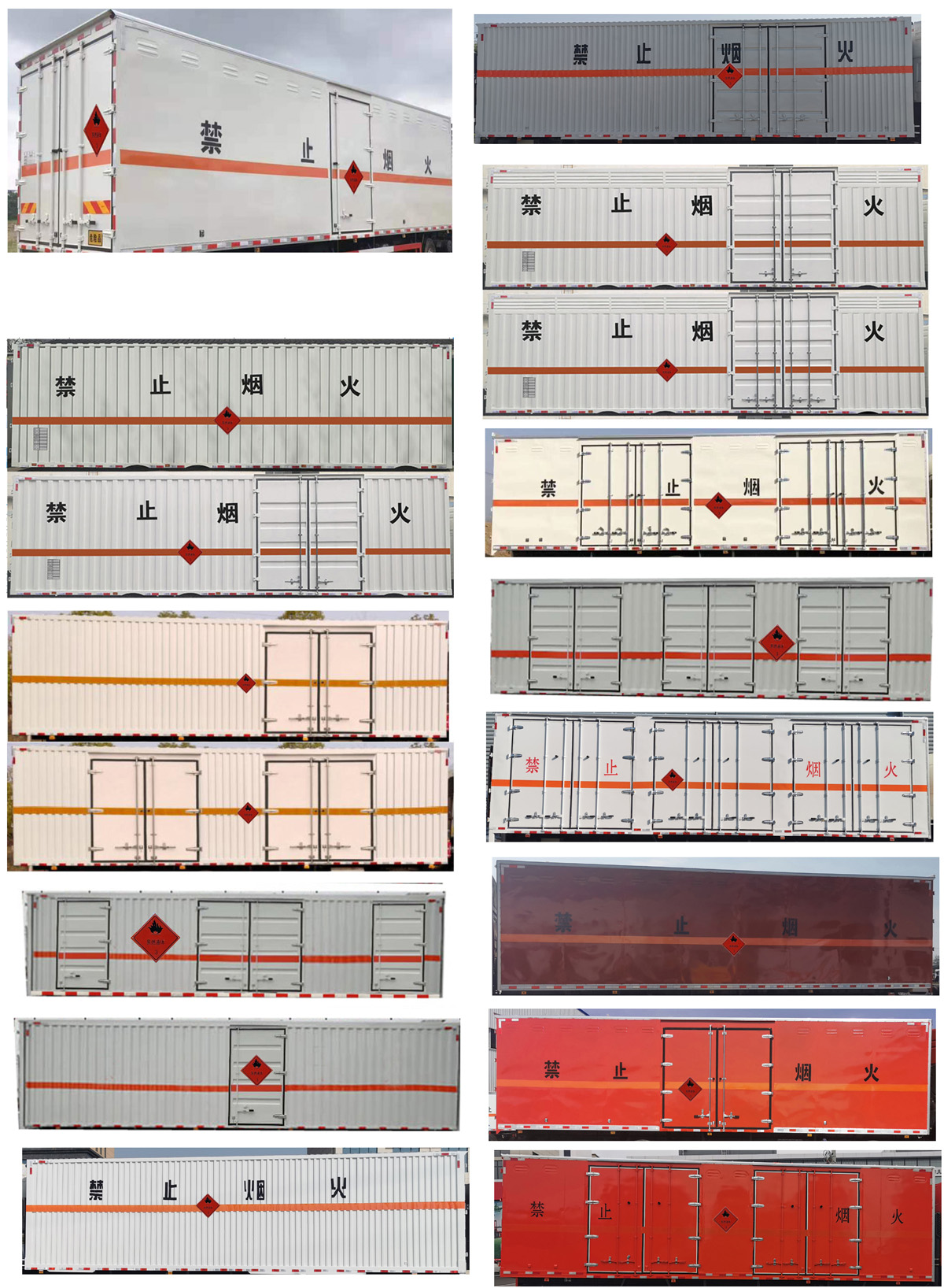 | 配置 | 1、該車適用于危險品運輸,類項號:3。2、側(cè)、后防護材料均為Q235,側(cè)防護螺栓連接;后防護焊接,截面尺寸(寬×高)(mm)60×120,下邊緣離地高480mm。3、僅采用軸距(mm): 1800+4575+1400。EBS系統(tǒng)生產(chǎn)廠家及型號為:威伯科汽車**系統(tǒng)(**)有限公司(EBS3),廣州瑞立科密汽車電子股份有限公司(CM-EBS)。僅選用排氣管前置、限速裝置(限速79km/h)、前輪盤式制動及子午線輪胎的底盤;安裝帶有衛(wèi)星定位功能的行駛記錄儀;發(fā)動機型號及油耗值(L/100km)為:WP7.270E61/37.47,WP7.300E61/37.47,WP8.320E61/38.07,WP8.350E61/38.07。后軸采用空氣懸架。轉(zhuǎn)向輪安裝輪胎爆胎應(yīng)急防護裝置。尾板收起狀態(tài)水平長度為290mm,尾板質(zhì)量為550kg。該車型可選裝ETC車載裝置.選裝后部無尾板;選裝側(cè)門型式及位置,選裝側(cè)門數(shù)量,選裝不開側(cè)門,廂體側(cè)面板選裝開百葉窗,選裝瓦楞板結(jié)構(gòu)。廂體頂部封閉不可開啟。運輸具有**容器(瓶)包裝的物品。 | ||