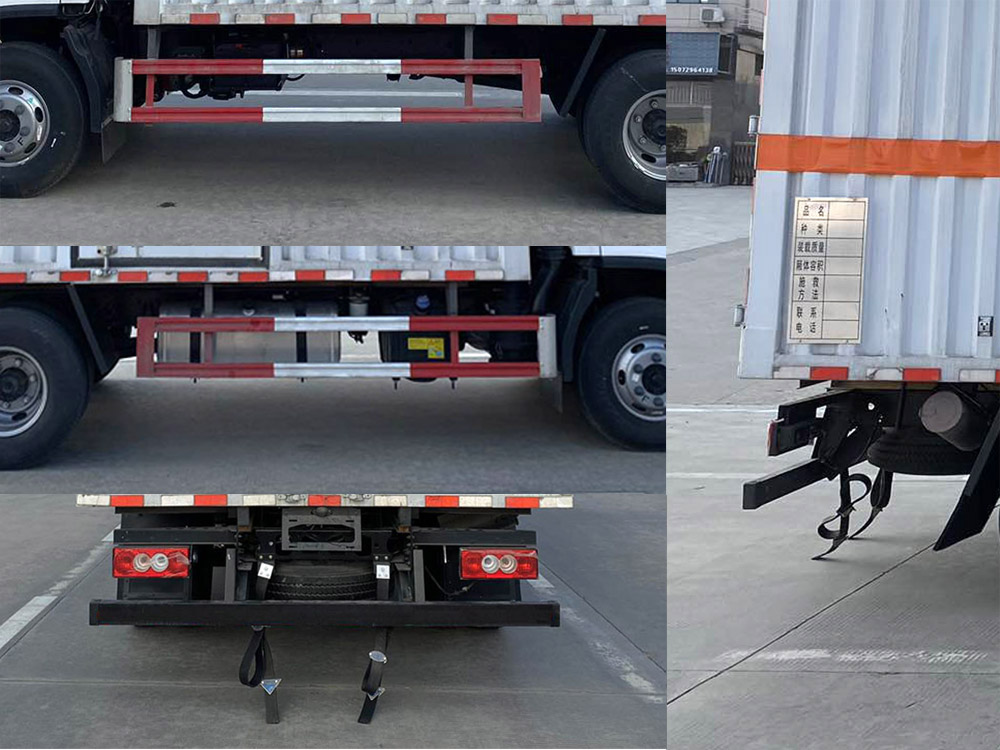 | 其它: | 1、該車適用于運輸危險品。廂體頂部封閉不可開啟。運輸具有獨立容器(瓶)包裝的物品,運送危險物品類項號:8。2、側(cè),后防護材料均為Q235,螺栓連接;后防護截面尺寸100×50mm,下邊緣離地高410mm。廂體側(cè)面選裝開門型式及位置,選裝不帶側(cè)開門,選裝瓦楞板結(jié)構(gòu);選裝百葉窗。3、隨底盤選裝排半駕駛室,選裝導流罩。僅選用排氣管前置、限速裝置(限速80km/h)、前輪盤式制動及子午線輪胎的底盤;轉(zhuǎn)向輪裝備輪胎爆胎應(yīng)急防護裝置。安裝帶衛(wèi)星定位功能的行駛記錄儀。ABS系統(tǒng)型號:ABS-VI.E;生產(chǎn)企業(yè):廣州瑞立科密汽車電子股份有限公司.ABS系統(tǒng)型號:ABS-E;生產(chǎn)企業(yè):威伯科汽車控制系統(tǒng)(中國)有限公司.ABS系統(tǒng)型號:ABS8.8 ECU 24V,生產(chǎn)企業(yè):東科克諾爾商用車制動系統(tǒng)(十堰)有限公司。發(fā)動機/油耗值(L/100km)對應(yīng)關(guān)系為:CY4SK261/16.09,D30TCIF1/16.19,F2.8NS6B156/15.39,F3.8NS6B156/14.90??蛇x裝ETC車載裝置。 | ||