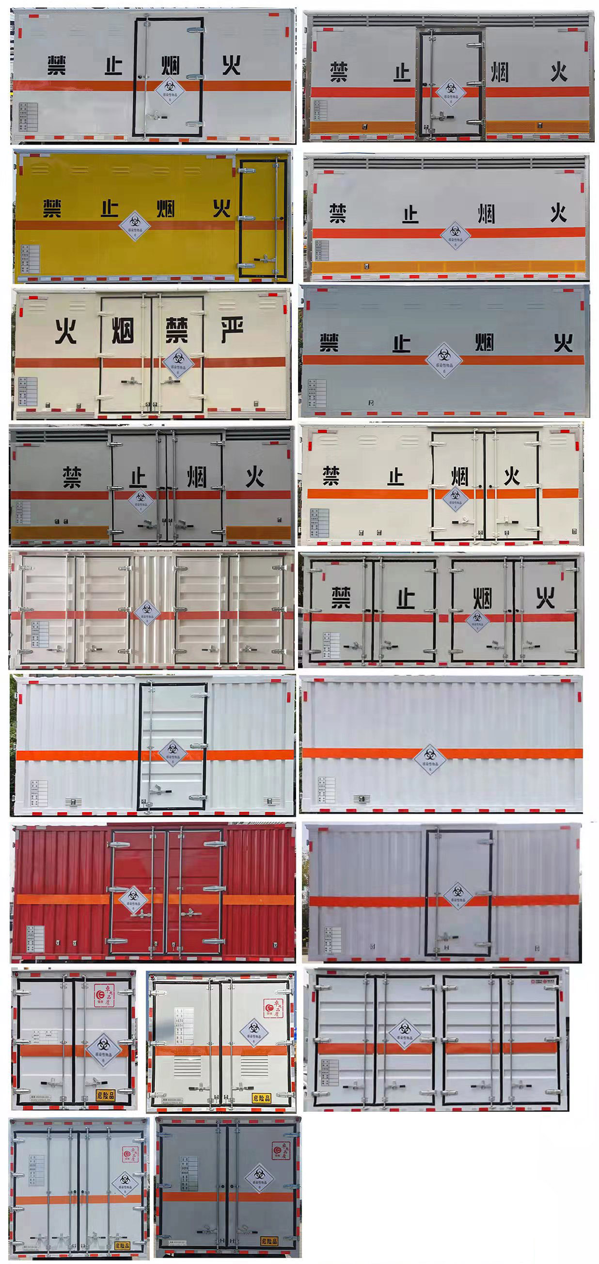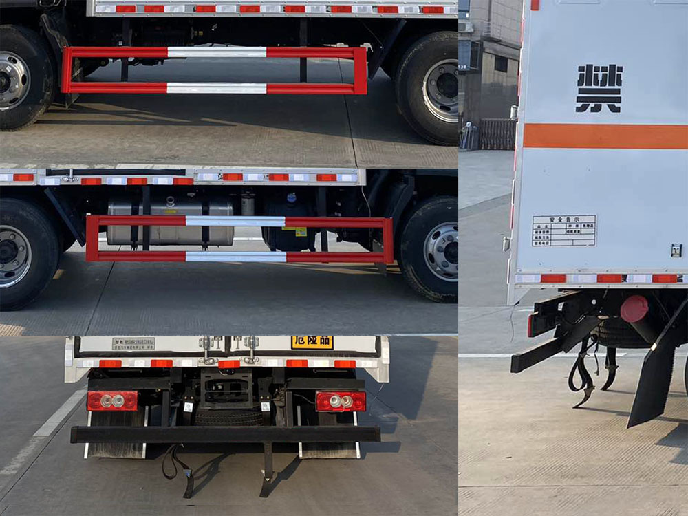 | 其它: | 1、該車適用于運(yùn)輸危險(xiǎn)品。廂體頂部封閉不可開啟。運(yùn)輸具有獨(dú)立容器(瓶)包裝的物品,運(yùn)送危險(xiǎn)物品類項(xiàng)號(hào):6.1,6.2。2、側(cè),后防護(hù)材料均為Q235,螺栓連接;后防護(hù)截面尺寸100×50mm,下邊緣離地高410mm。廂體側(cè)面選裝開門型式及位置,選裝不帶側(cè)開門,選裝瓦楞板結(jié)構(gòu);選裝百葉窗。3、隨底盤選裝排半駕駛室。僅選用排氣管前置、限速裝置(限速80km/h)、前輪盤式制動(dòng)及子午線輪胎的底盤;轉(zhuǎn)向輪裝備輪胎爆胎應(yīng)急防護(hù)裝置。安裝帶衛(wèi)星定位功能的行駛記錄儀。ABS系統(tǒng)型號(hào):ABS-VI.E;生產(chǎn)企業(yè):廣州瑞立科密汽車電子股份有限公司;ABS系統(tǒng)型號(hào):ABS-E;生產(chǎn)企業(yè):威伯科汽車控制系統(tǒng)(中國)有限公司;ABS系統(tǒng)型號(hào):ABS8.8 ECU 24V,生產(chǎn)企業(yè):東科克諾爾商用車制動(dòng)系統(tǒng)(十堰)有限公司;發(fā)動(dòng)機(jī)/油耗值(L/100km)對(duì)應(yīng)關(guān)系為:CY4SK261/16.09,D30TCIF1/16.19,F2.8NS6B156/15.39,F3.8NS6B156/14.90。可選裝ETC車載裝置。 | ||