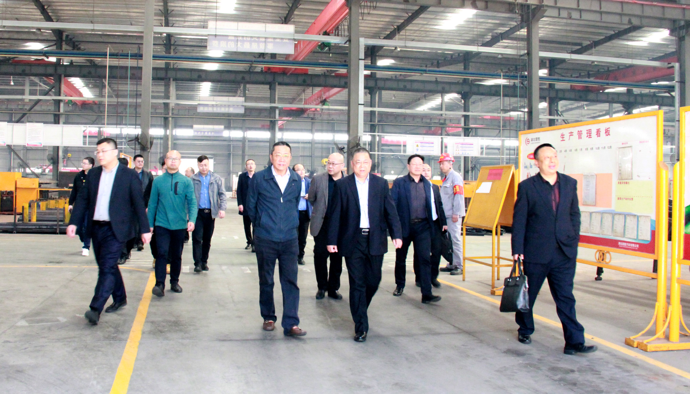總裁王小康帶領(lǐng)蔡總等一行領(lǐng)導(dǎo)參觀了公司罐式車、自卸車、備料中心、消防車、環(huán)衛(wèi)車、清障車生產(chǎn)車間,隨后在會議室對公司發(fā)展歷程、“6+X”產(chǎn)品戰(zhàn)略、十四五發(fā)展規(guī)劃作了詳細介紹。中國重汽蔡總對楚勝公司的發(fā)展方向和市場定位表示高度贊賞,并向參會人員重點介紹了重汽汕德卡、豪沃、豪曼、成都王牌產(chǎn)品及市場情況,雙方就業(yè)務(wù)合作進行了交流溝通。
