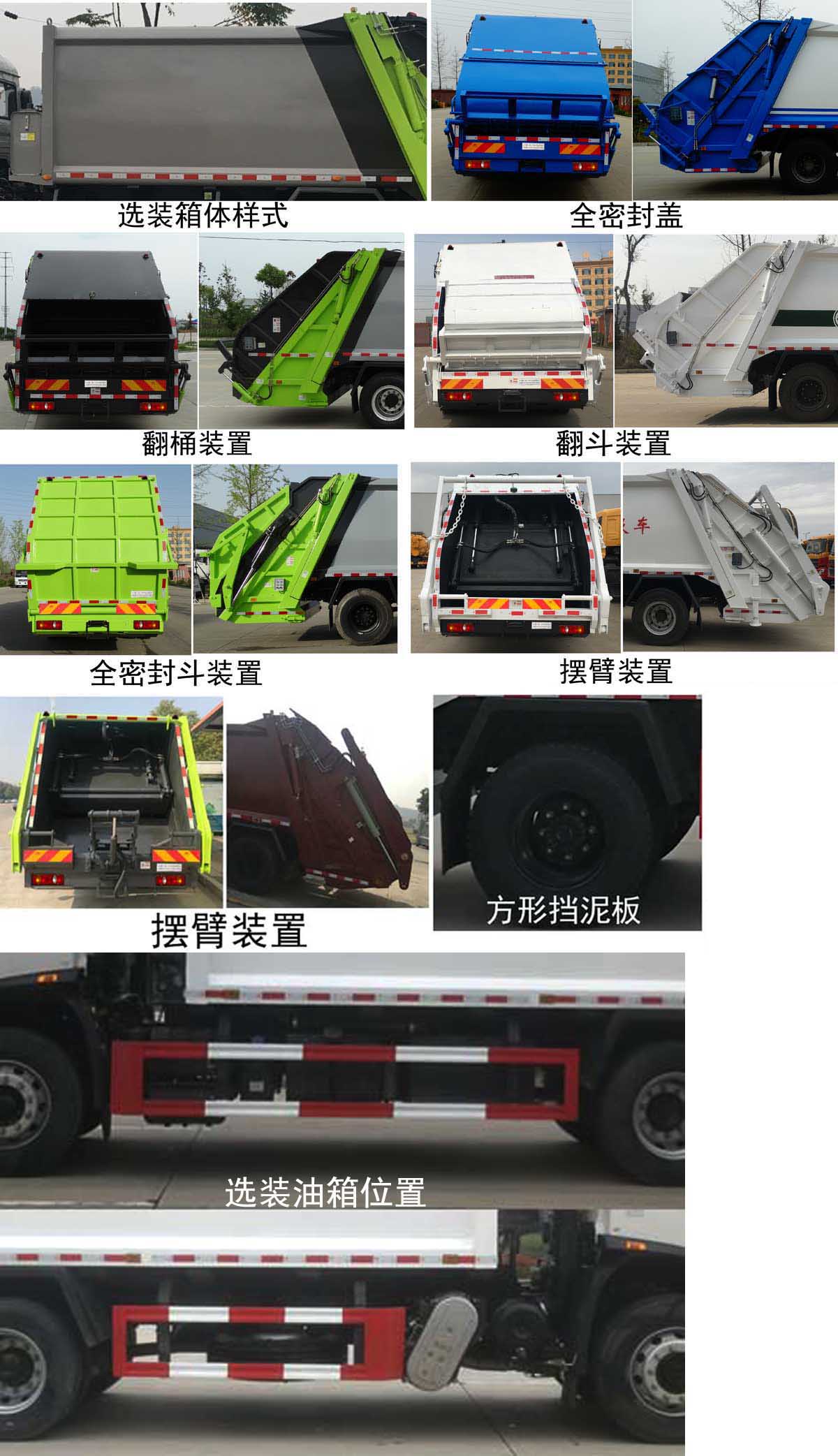 | 配置 | 1、該車(chē)主要專(zhuān)用裝置由箱體、壓縮系統(tǒng)組成,用于垃圾的收集與清運(yùn)。該車(chē)可選裝方形或弧形箱體,選裝全密封蓋裝置,選裝方形擋泥板,選裝后部工作裝置,選裝側(cè)防護(hù)樣式。選裝工作裝置時(shí)外形長(zhǎng)/前懸/軸距/后伸對(duì)應(yīng)關(guān)系為(mm):①無(wú)上料裝置:8670/1400/4500/-;8700/1430/4500/-;8870/1400/4700/-;8900/1430/4700/-;②全密封斗裝置和擺臂裝置:8870/1400/4500/200;8900/1430/4500/200;9070/1400/4700/200;9100/1430/4700/200;③翻桶裝置和翻斗裝置:9070/1400/4500/400;9100/1430/4500/400;9270/1400/4700/400;9300/1430/4700/400。僅采用4500mm,4700mm軸距。2、側(cè)防護(hù)采用冷彎型鋼/Q235,螺栓連接;后防護(hù)由專(zhuān)用裝置替代,下邊緣離地高:500mm。3、隨底盤(pán)選裝高度不同的駕駛室;選裝前霧燈;選裝駕駛室頂部裝飾燈;選裝駕駛室前面罩;選裝前保險(xiǎn)杠及前部燈具,駕駛室前臉擾流罩為選裝件;駕駛室臥鋪側(cè)窗選裝裝飾板;選裝油箱安裝位置,選裝踏步結(jié)構(gòu)。安裝帶有衛(wèi)星定位功能的行駛記錄儀。ABS型號(hào)/生產(chǎn)廠家:3631010-C2000/東科克諾爾商用車(chē)制動(dòng)系統(tǒng)(十堰)有限公司,ABS 8/東科克諾爾商用車(chē)制動(dòng)系統(tǒng)(十堰)有限公司, 4460046450/威伯科汽車(chē)**系統(tǒng)(**)有限公司。采用的發(fā)動(dòng)機(jī)與油耗值對(duì)應(yīng)關(guān)系為(L/100Km):DDi50E190-60/23.9,D4.5NS6B190/24.4,D6.7NS6B230/23.7,B6.2NS6B210/23.8,B6.2NS6B230/23.8。 | ||