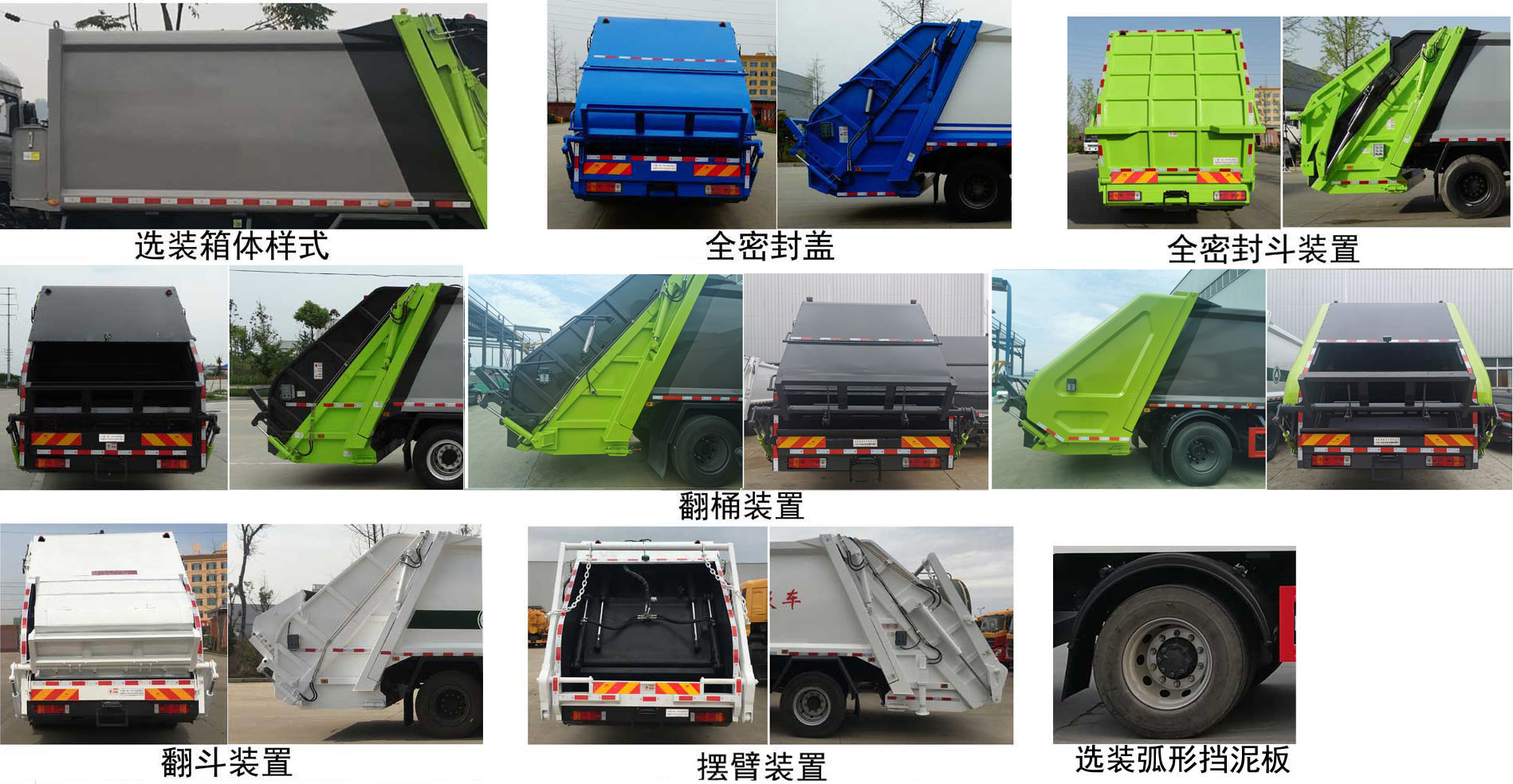 | 配置 | 1、該車主要專用裝置由箱體、壓縮系統(tǒng)組成,用于垃圾的收集與清運(yùn)。該車可選裝方形或弧形箱體,選裝全密封蓋裝置,選裝方形擋泥板。選裝后部工作裝置。選裝工作裝置時(shí)外形長/后伸對應(yīng)關(guān)系為(mm):①無上料裝置:8680/-;②全密封斗裝置和擺臂裝置:8880/4500/200;③翻桶裝置和翻斗裝置:9080/400。僅采用4500mm軸距。2、側(cè)防護(hù)采用冷彎型鋼/Q235,螺栓連接;后防護(hù)由專用裝置替代,下邊緣離地高:500mm。3、隨底盤選裝前圍和燈具,選裝寬體保險(xiǎn)杠,腳踏板。安裝帶有衛(wèi)星定位功能的行駛記錄儀。ABS系統(tǒng)生產(chǎn)廠家:長春瑞立科密汽車電子有限公司,型號:CM4XL。采用的發(fā)動機(jī)與油耗值對應(yīng)關(guān)系為(L/100Km):CA4DK1-22E6/25.6,CA4DK1-18E6/25.6,CA6DH1-24E6/26.92。 | ||