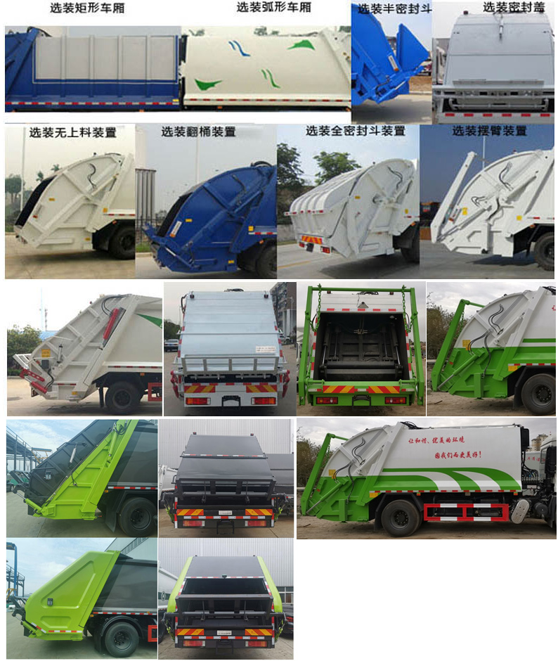 其它 | 1、該車主要專用裝置由箱體、壓縮系統(tǒng)組成,用于垃圾的收集與清運(yùn)。該車可選裝方形或弧形箱體,選裝全密封蓋裝置,選裝方形擋泥板,選裝側(cè)防護(hù)連接結(jié)構(gòu)件,選裝側(cè)防護(hù)樣式。選裝后部工作裝置。選裝多路閥位置,液壓油箱位置。選裝爬梯樣式;選裝工作裝置時外形長/前懸/軸距/后伸對應(yīng)關(guān)系為(mm):①無上料裝置:8680/1400/4500/-,8710/1430/4500/-,8880/1400/4700/-,8910/1430/4700/- ;②全密封斗裝置和擺臂裝置:8880/1400/4500/200,8910/1430/4500/200,9080/1400/4700/200,9110/1430/4700/200;③翻桶裝置和翻斗裝置:9080/1400/4500/400,9110/1430/4500/400,9280/1400/4700/400,9310/1430/4700/400。僅采用4500mm,4700mm軸距。2、側(cè)防護(hù)采用冷彎型鋼/Q235,螺栓連接;后防護(hù)由專用裝置替代,下邊緣離地高:500mm。3、隨底盤選裝選裝高度不同的駕駛室;選裝前霧燈;選裝駕駛室頂部裝飾燈;選裝駕駛室前面罩;選裝前保險杠及前部燈具,選裝后視鏡;選裝后部燈具;選裝駕駛室前臉擾流罩;駕駛室臥鋪側(cè)窗選裝裝飾板,選裝后背式排氣管。安裝帶有衛(wèi)星定位功能的行駛記錄儀。ABS型號/生產(chǎn)廠家:3631010-C2000/東科克諾爾商用車制動系統(tǒng)(十堰)有限公司,ABS 8/東科克諾爾商用車制動系統(tǒng)(十堰)有限公司, 4460046450/威伯科汽車控制系統(tǒng)(中國)有限公司,J ABS/焦作博瑞克控制技術(shù)有限公司。采用的發(fā)動機(jī)與油耗值對應(yīng)關(guān)系為(L/100Km):DDi50E190-60/23.9,D4.5NS6B190/24.4,D6.7NS6B230/23.7,B6.2NS6B210/23.8,B6.2NS6B230/23.8。隨底盤選裝油箱位置。選裝箱體樣式,填裝器樣式。隨底盤選裝后處理、電瓶、尿素罐、備胎安裝位置。選裝油管布局. | ||
