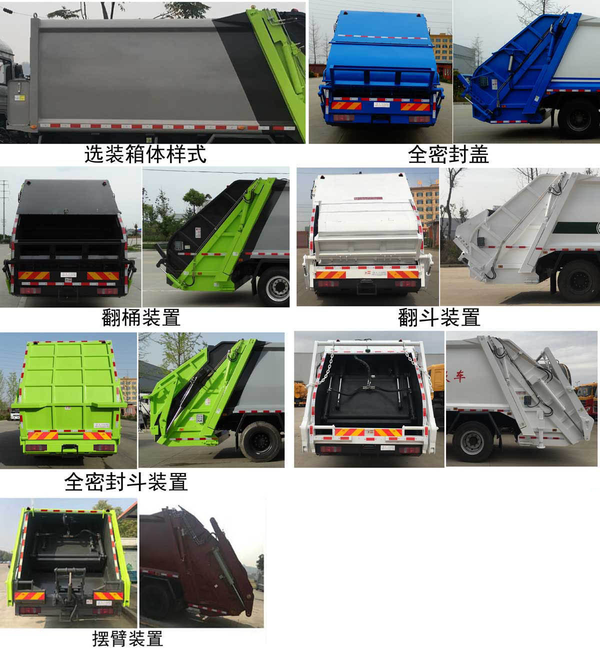 | 配置 | ABS系統(tǒng)**器生產(chǎn)企業(yè)/型號為威伯科(上海)管理有限公司/4460046300;選裝EBS,EBS系統(tǒng)**器生產(chǎn)企業(yè)/型號為威伯科(上海)管理有限公司/EBS3。該車型可選裝ETC車載裝置。該車可選裝方形或弧形箱體,選裝全密封蓋裝置,選裝爬梯。選裝后部工作裝置整車長度/軸距/后伸對應(yīng)關(guān)系為(mm):①無翻轉(zhuǎn)機構(gòu)時8730/4500/-,8930/4700/-。②翻桶裝置、半密封裝置9130/4500/400,9330/4700/400。 ③全密封斗裝置、擺臂裝置8930/4500/200,9130/4700/200。隨底盤選裝駕駛室。發(fā)動機/油耗值(L/100km)對應(yīng)關(guān)系為:WP4.6NQ220E61/24.97; WP6H245E61/25.5.側(cè)防護采用Q235,螺栓連接;后防護由專用裝置替代,下邊緣離地高:500mm;專用功能及裝置:該車主要專用裝置由箱體、壓縮系統(tǒng)組成,用于垃圾的收集與清運;僅選用軸距4500mm,4700mm.選裝前部、后部組合燈具。選裝電瓶箱、儲氣筒、尿素罐的外觀型式和布置位置,選裝污水箱位置。 | ||