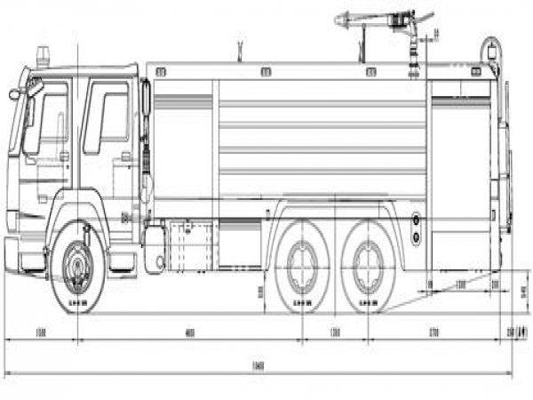 17噸泡沫消防車采用中國重汽集團濟南卡車股份有限公司ZZ5357TXFV464MF5型二類汽車底盤,原裝雙排駕駛室,乘員2+4人,該車駕乘舒適輕便。上裝采用外露式水罐,整車載液量為水14000kg;泡沫3000kg。器材箱采用高質(zhì)量鋁合金卷簾門。底盤取力,發(fā)動機型號為MC11.44-60 ,最大功率327kW,通過萬向聯(lián)軸器驅(qū)動安裝在汽車尾部泵房里的上海茸申CB10/100型低壓消防泵,可在1.0MPa下穩(wěn)定輸出100L/s的流量;車頂安裝成都威斯特消防器材有限責(zé)任公司生產(chǎn)的PL8/80型消防炮(泡沫消防車),流量80L/s,對應(yīng)壓力0.8MPa,最大承壓1.3MPa,純水射程75m,泡沫射程70m,可360°旋轉(zhuǎn)。同時該車具有比功率大、綜合性能強、操控集中簡便等特點。